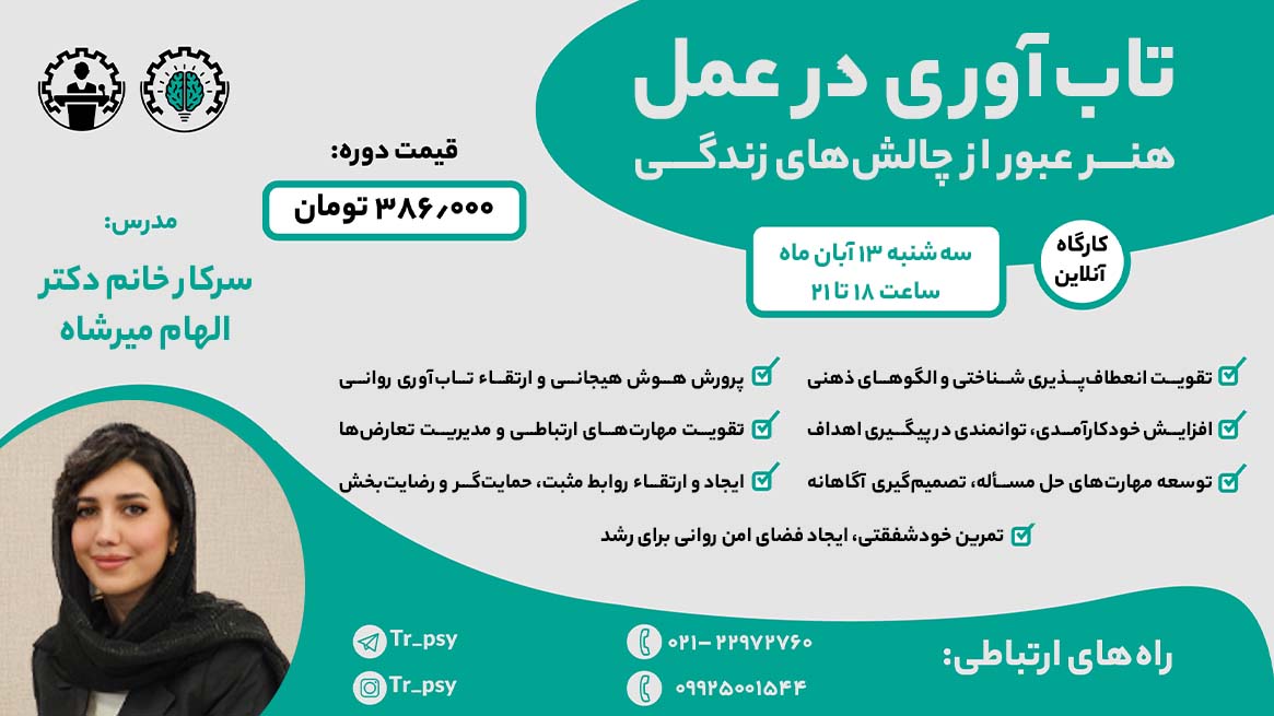 ۱. این کارگاه چه کمکی به من میکند؟ در این کارگاه یاد میگیرید چگونه در برابر مشکلات زندگی انعطافپذیرتر باشید،استرسهای روزمره را بهتر مدیریت کنید و از چالشها به عنوان فرصتی برای رشد شخصی استفاده نمایید.